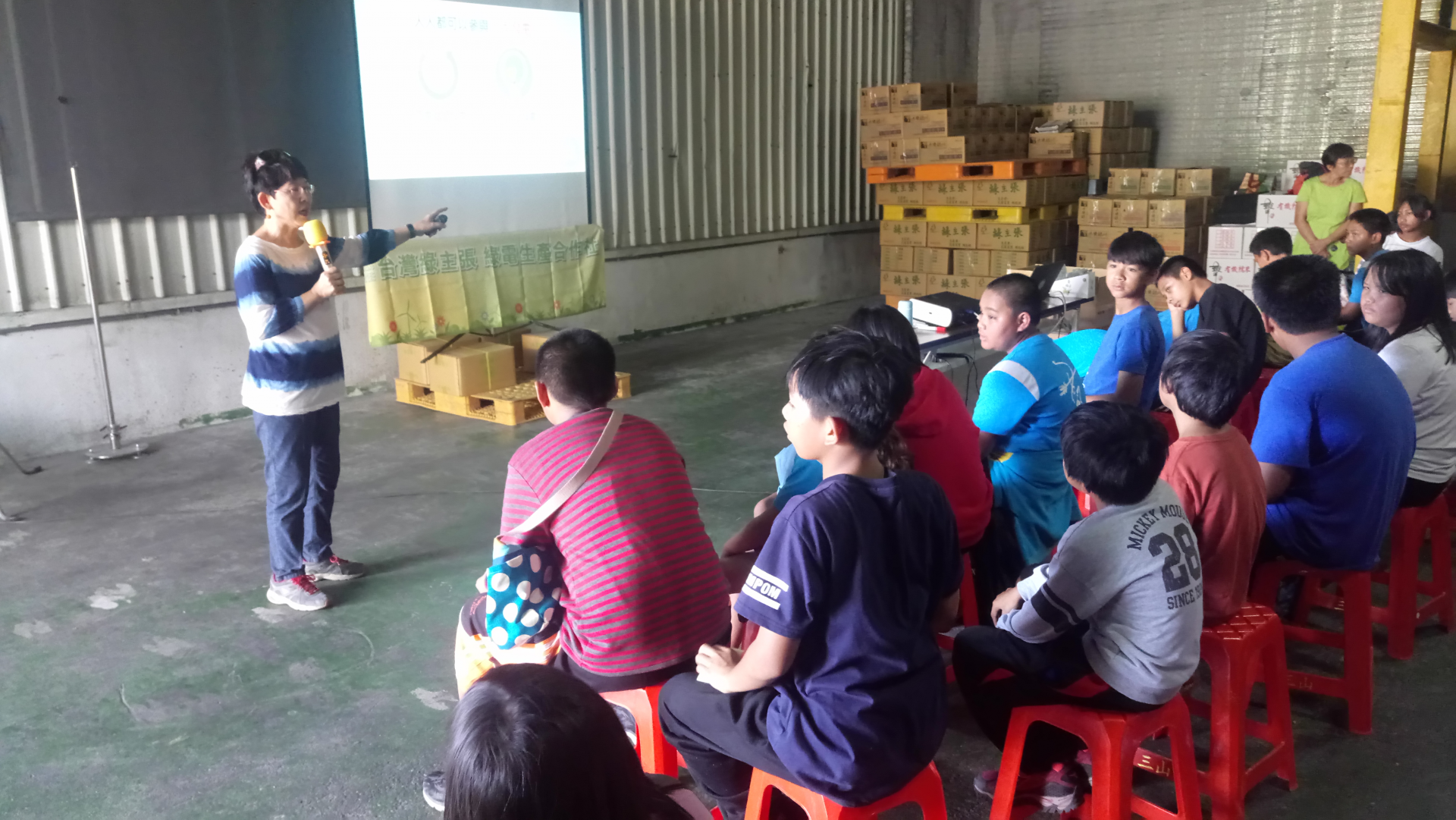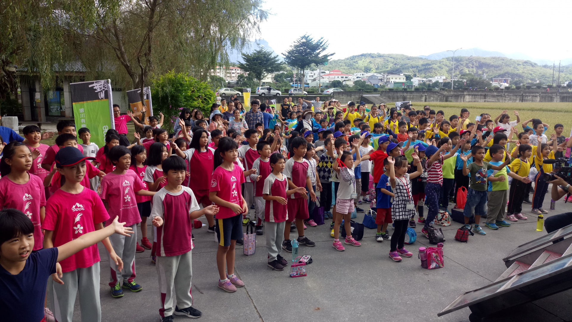 現場利用農場的各個角落佈置不同的主題教室,參與活動者分組在各關之間走動。我們的關卡由三位參與的伙伴輪流上陣。站到台上,才知道除了內容,更大的挑戰是面對不同的聽眾,該如何微調肢體、音聲的表達,來吸引大家的注意力。面對低年級學生,怎麼樣能快速把艱深的內容,改成平易近人的知識。面對農友,還要不經意地冒幾句台語來拉近距離。談到台灣空汙嚴重,受PM2.5紫爆威脅時,在座的,不論大朋友還是小小孩,都紛紛回應:花東縱谷是全台僅剩的清新空氣,要好好珍惜。